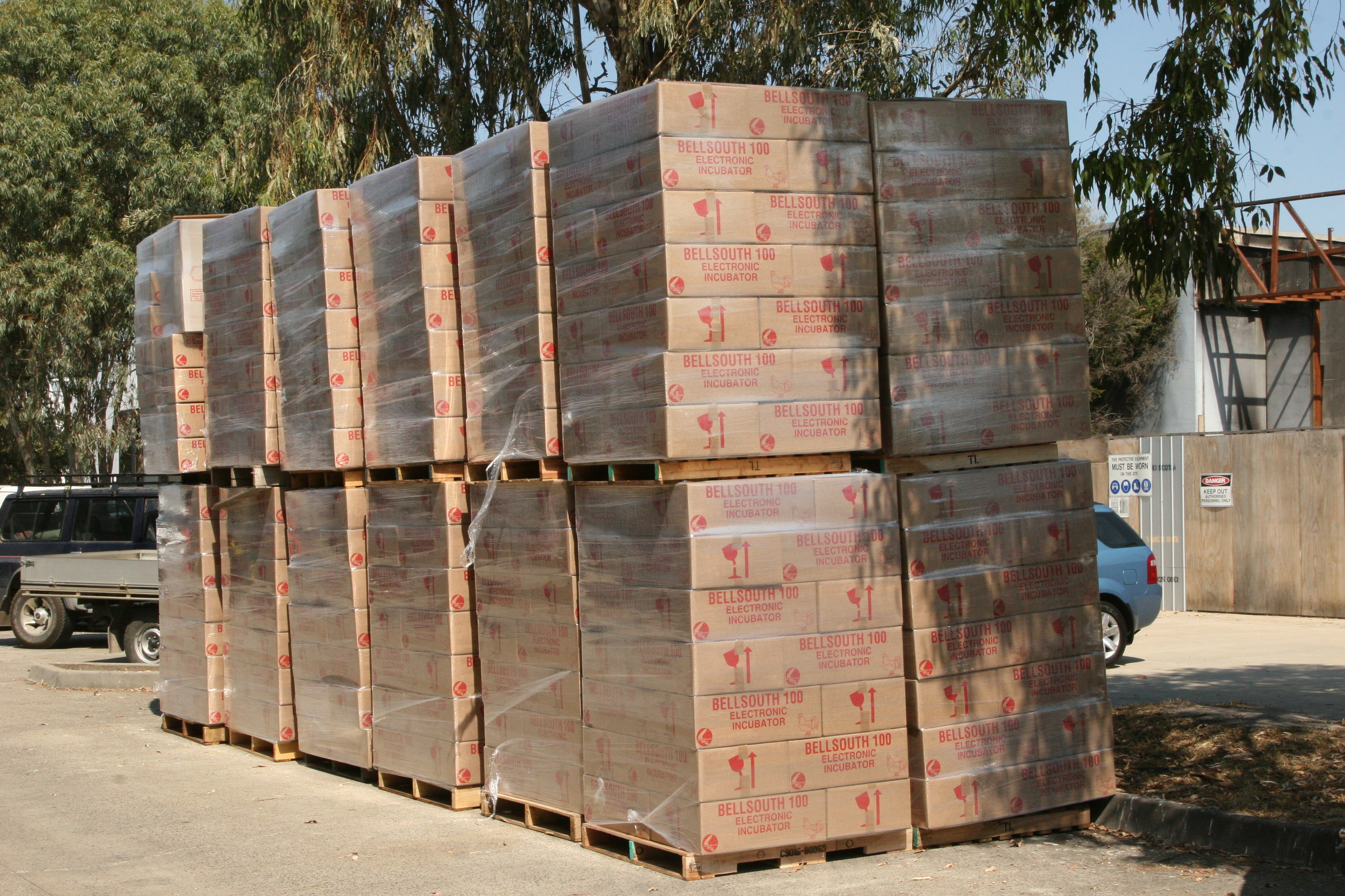 An inwards shipment of the cases ready for assembly. Made in a factory in Dandenong. We ran a batch like this every 6 months or so. Just unloaded from the Pantec, ready to stack away on the mezzanine floor.