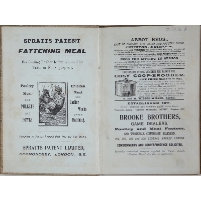 From the view of the exhibitor and breeder, this is one of the most important works of Edward Brown. A systematic examination of the races of Poultry and the resultant breeds derived from each race or type. Very heavily illustrated, unfortunately only in black and white engravings. Had it been in colour it would have usurped Wright as the standard work. The frontis pic is the same as the pic used in Industrial Poultry Keeping black and white.
