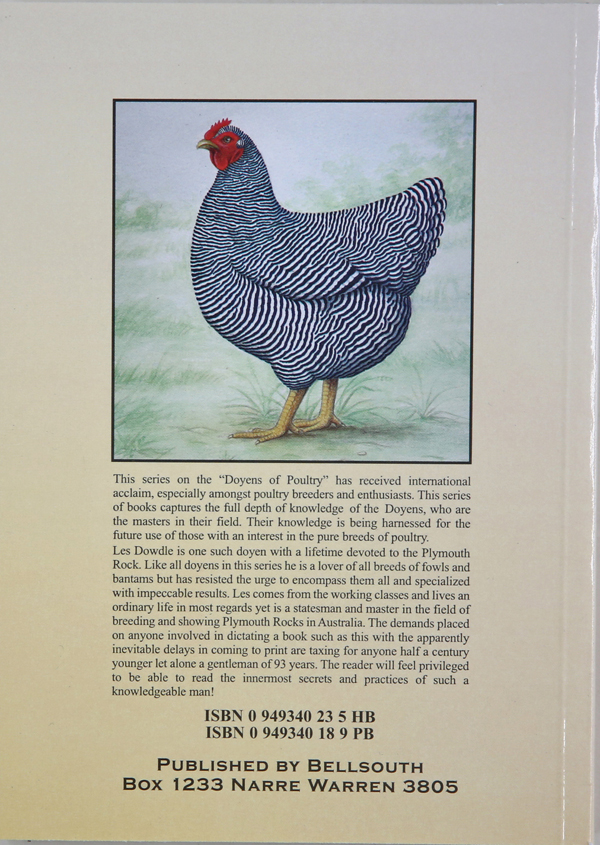 This series was originally conceived as a series of Australian Breed books much like the Shire publications. However Adrian Kuys suggested that the series should be the breeds and the breeder. It should feature prominent Australian breeds and successful breeders. Adrian suggested the idea of the Doyens of Poultry as the series title. A Doyen is a specialist recognized for the contribution to the breed. Unfortunately we started the series a little too late. Colin Gregor passed away before the book was released, and three other titles in the series were at the stage of interviews concluded and drafts written but never concluded as all passed away before they could be completed. Adrian Kuys passed away before Covid and the notes were lost. So the series is limited to the 5 Books.