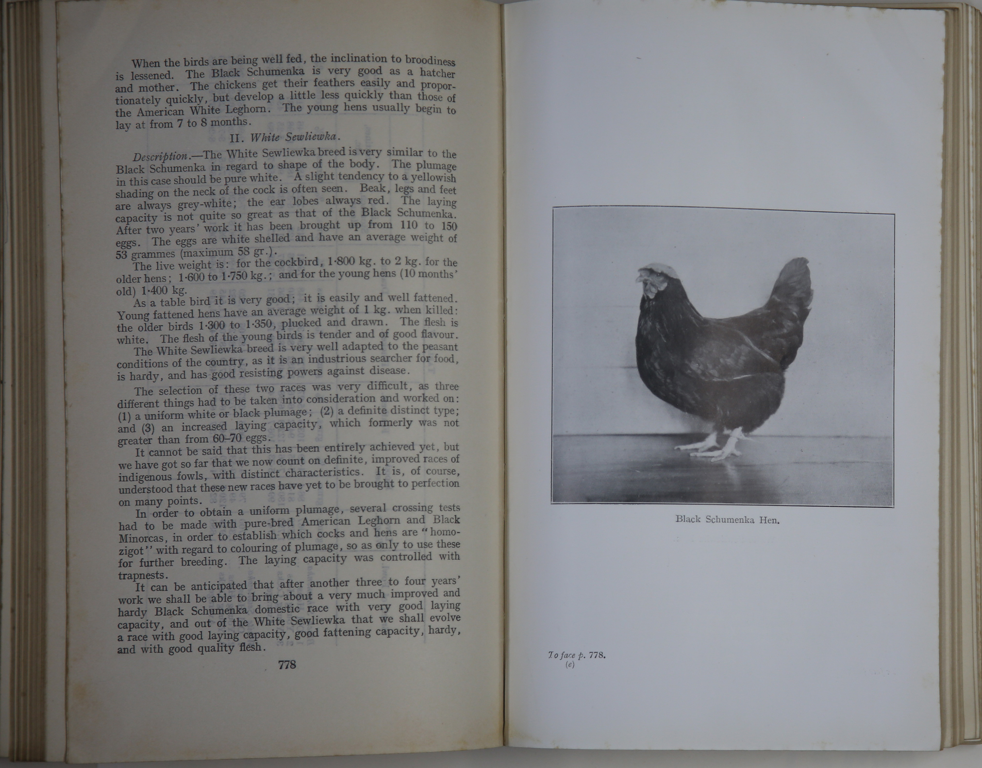 Before even the idea of "poultry teachers or extension officers" for the common man was formed, Edward Brown was writing books for the ordinary poultry keeper, researching other countries methods, conducting classes and advocating for a national, and later, an international collaboration of poultry education. He was instrumental in establishing the National Poultry Conference, England, in 1912 then The International Association of Poultry Instructors and Investigators, which became the World Poultry Science Association. The WPSA organized First World Poultry Congress in the Hague. The same sequence of World Poultry Congress meetings continues to this day. It included the two in Australia, 1962 in Sydney, the last to have a live and judged purebreed poultry exhibition as part of the Congress, and the 2008 Congress in Brisbane where again Poultry exhibitors had a range of meetings specific to small breeders and conservationists, though no live poultry. Interestingly the earliest work by Edward Brown was written under a pseudonym, as Edward was concerned that serious scientists were not involved in teaching poultry. Only women did that. I wonder what today's liberated population would think of that. Later he was knighted becoming Sir Edward Brown for his services to the poultry industry.